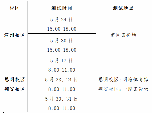 1.本次测试采用厦门大学《国家学生体质健康项目测试办法(详见附件2)。