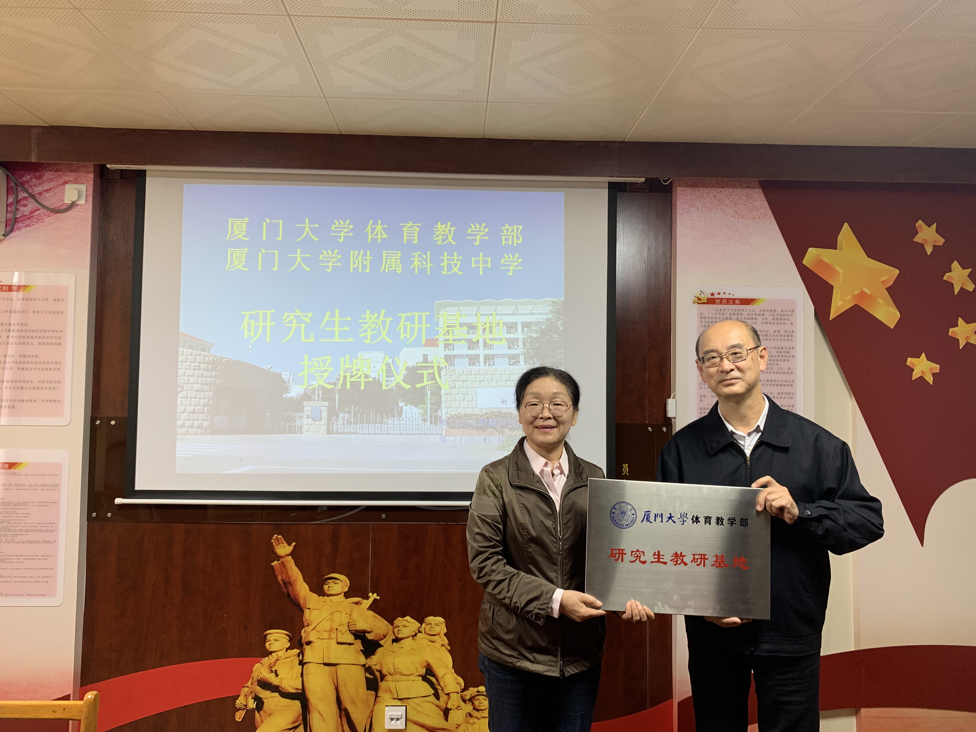 实习圆满结束后,体育教学部与科技中学达成合作关系,正式挂牌设立厦门大学体育教学部研究生教研基地。11月27日,体育教学部陈志伟主任专程前往科技中学,进行了授牌仪式。