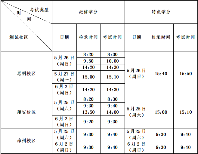 备注:6月2日场次专为以上5月考试时间冲突、女生生理期、毕业生未及时测试的同学开设。