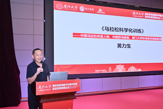 为推广长跑运动,厦门大学体育教学部副教授黄力生在2003年厦门马拉松后开设了马拉松课程,融合理论与实践,培养学生对长跑的热爱。论坛伊始,黄力生带来了一场题为《马拉松科学化训练》的专题演讲。他凭借多年的教学实践和科研经验,深入剖析了马拉松科学化训练的重要性及实施方法。他强调,科学的训练方法对于提升运动员竞技水平、预防运动损伤以及延长运动寿命具有至关重要的作用。