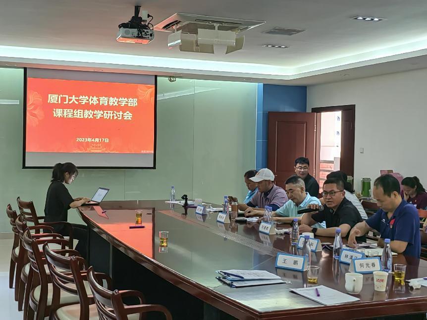 为进一步深化教育教学改革,全面加强教学课程组建设,提升教师教学能力建设水平,根据体育教学部课程组阶段性评估工作安排,2023年4月17 日下午,在王清明游泳馆三楼会议室召开厦门大学体育教学部课程组教学研讨会,体育教学部全体老师参与会议。会议由翁兴和副主任主持。
