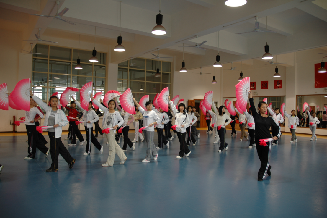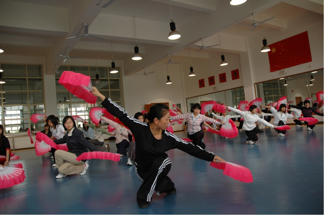 (二)、重点掌握套路动作,能够独立按要求完成所学套路动作,能够精神贯注、轻松自然地演练套路,同时表现出松静轻灵、协调一致的整体动作的和谐技能,表现出木兰扇舒展大方、动作柔中寓刚的运技能以及木兰扇端庄典雅、圆活柔美、协调自然的运动特点。