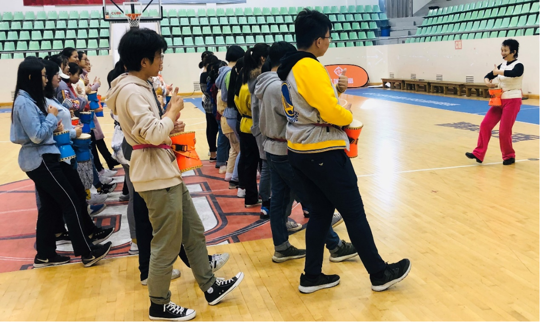 课程目的:通过手拍鼓教学与训练,不断刺激手部穴位与周身经络,提高大脑和神经的反映速度,起到激活末梢循环、振荡气脉、强身健体的作用,同时锻炼人体的节奏感、协调性和灵敏性素质,提升大学生的音乐与体育素养。