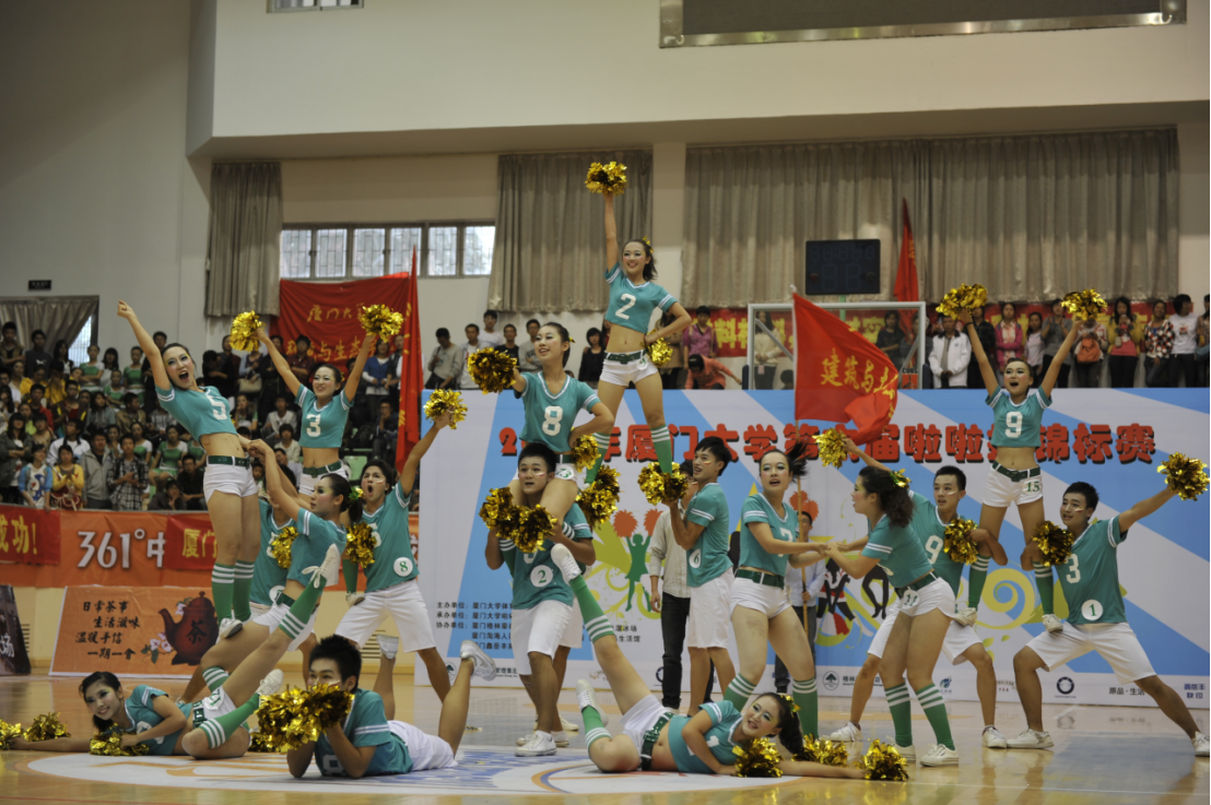啦啦队运动起源于美国,它以独特的价值和魅力风靡全世界。啦啦操是有着广泛群众性的在音乐伴奏下,通过运动员集体完成具有强烈感染性的多样的舞蹈动作、项目特有难度、过渡与配合动作等内容,充分体现青春活力、积极向上的团队精神,展示团队的运动技能技巧的一项集健身性、时尚性、艺术性、娱乐性和观赏性为一体的体育运动。啦啦操运动的内涵非常丰富,是一个极具包容性的项目,它吸收街舞、爵士、健美操、拉丁、民族舞、体操、技巧等多种风格元素,被许多人接受和喜欢,特别是受到青少年的欢迎。
