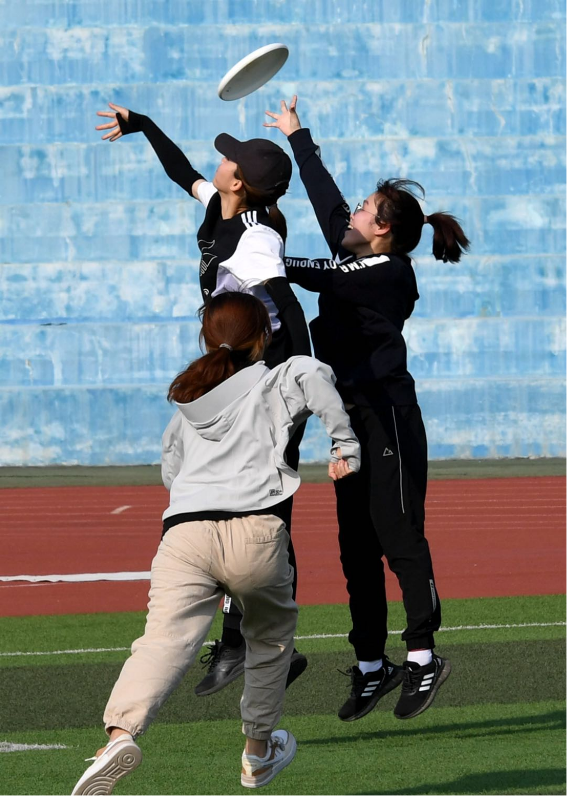 3.最后,通过极限飞盘促进学生的团队协作精神,理解和追求“尊重、理解、服从”的精神,培养具有高尚追求的人才,最终赢得自我认可和社会的适应力。